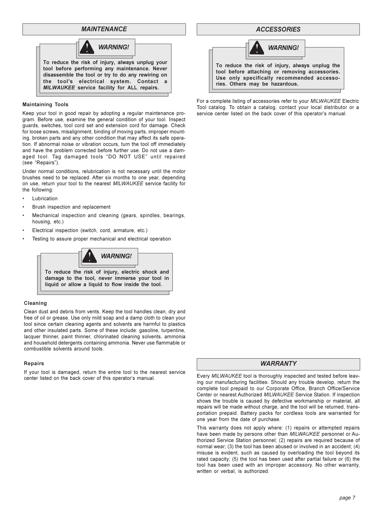 For a complete listing of accessories refer to your MILWAUKEE Electric