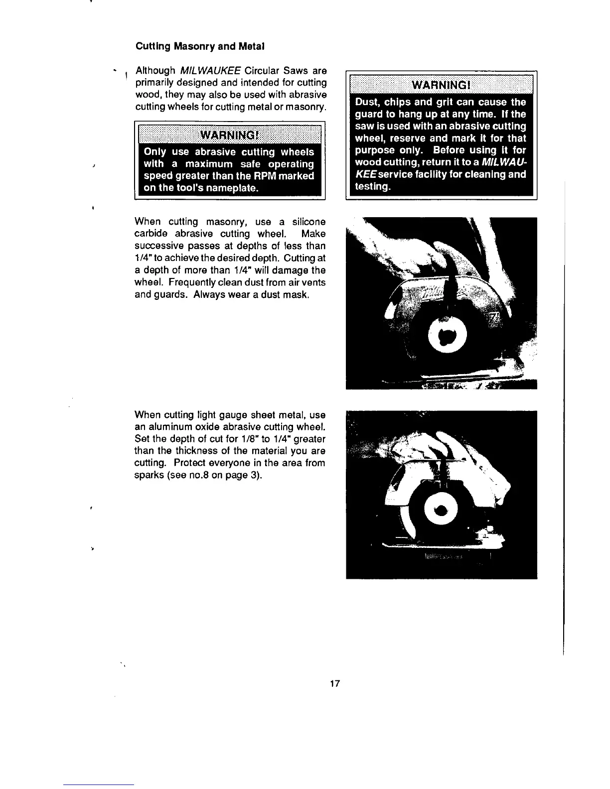 Milwaukee 6365 - Cutting Masonry and Metal; Abrasive Wheel Safety Warnings