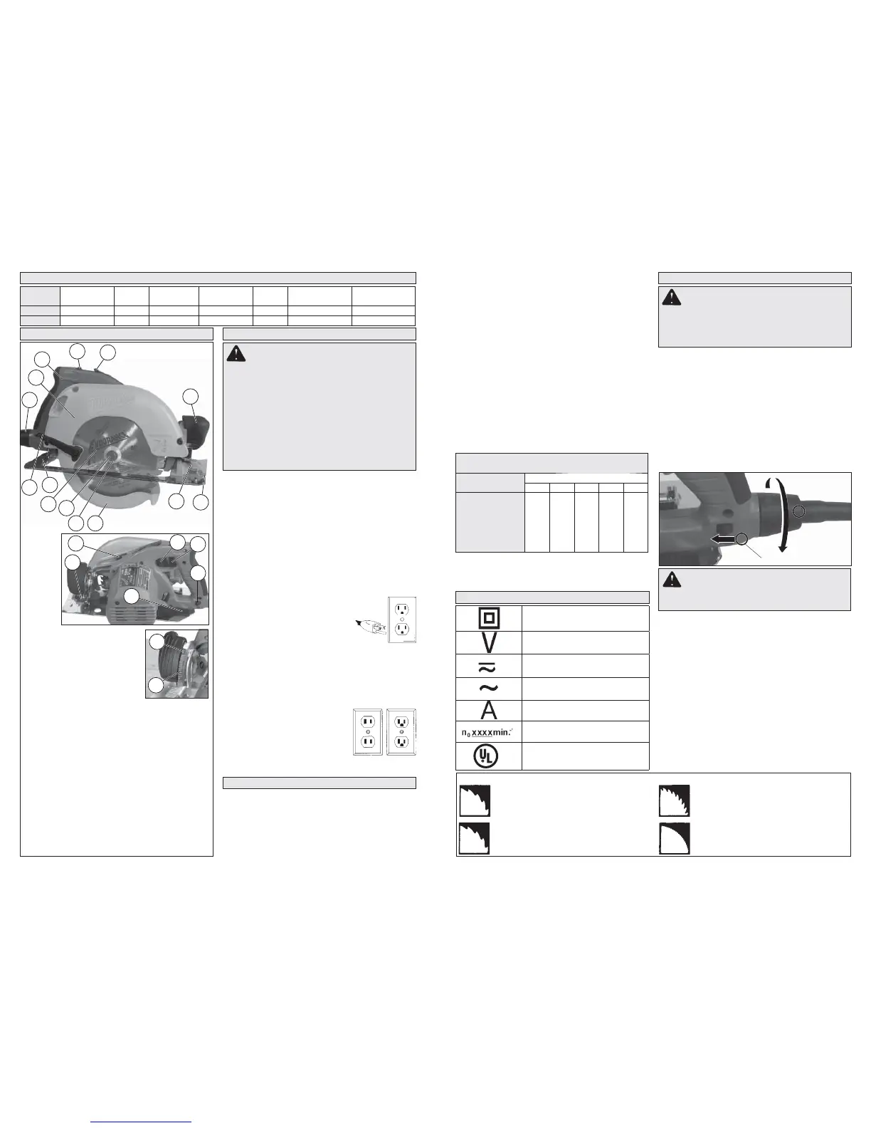 marked on the tool's nameplate. Read the blade