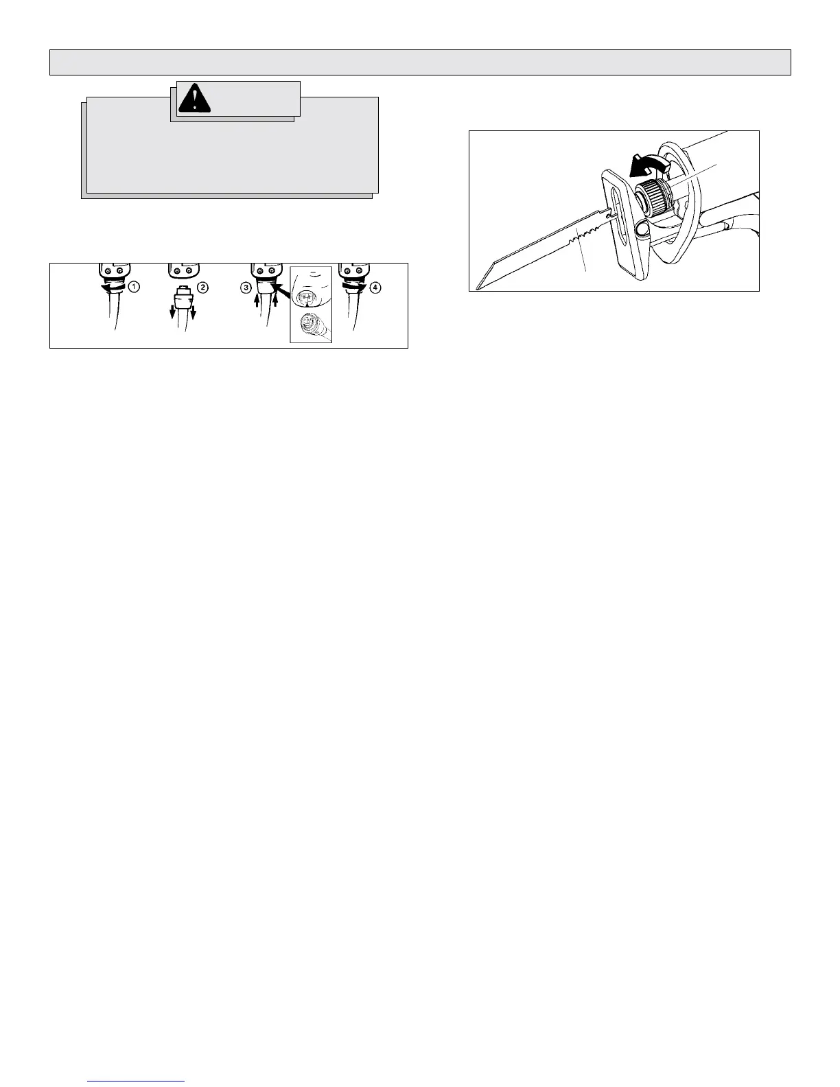 blade clamp. Twist the collar and pull the broken blade out of the