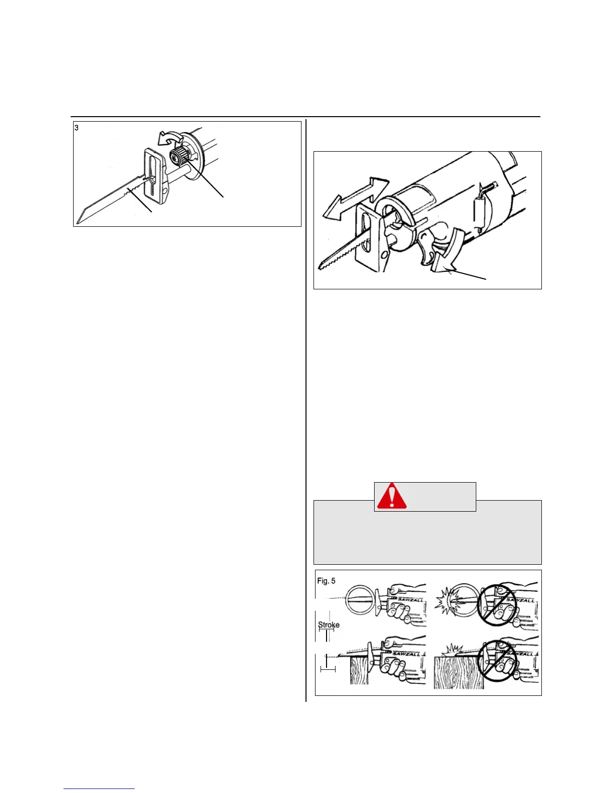 DO NOT OPERATE SAWZALL WITHOUT SHOE.