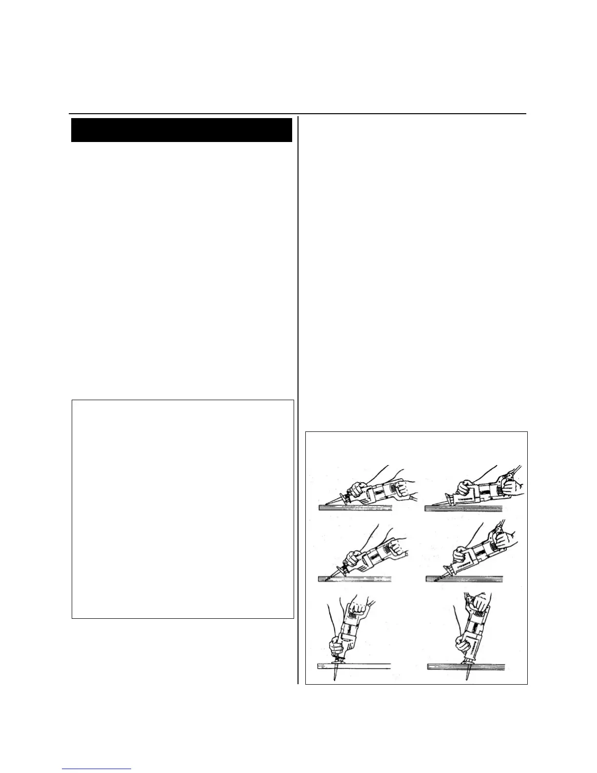 blade facing up. Do not plunge cut into metal surfaces (see
