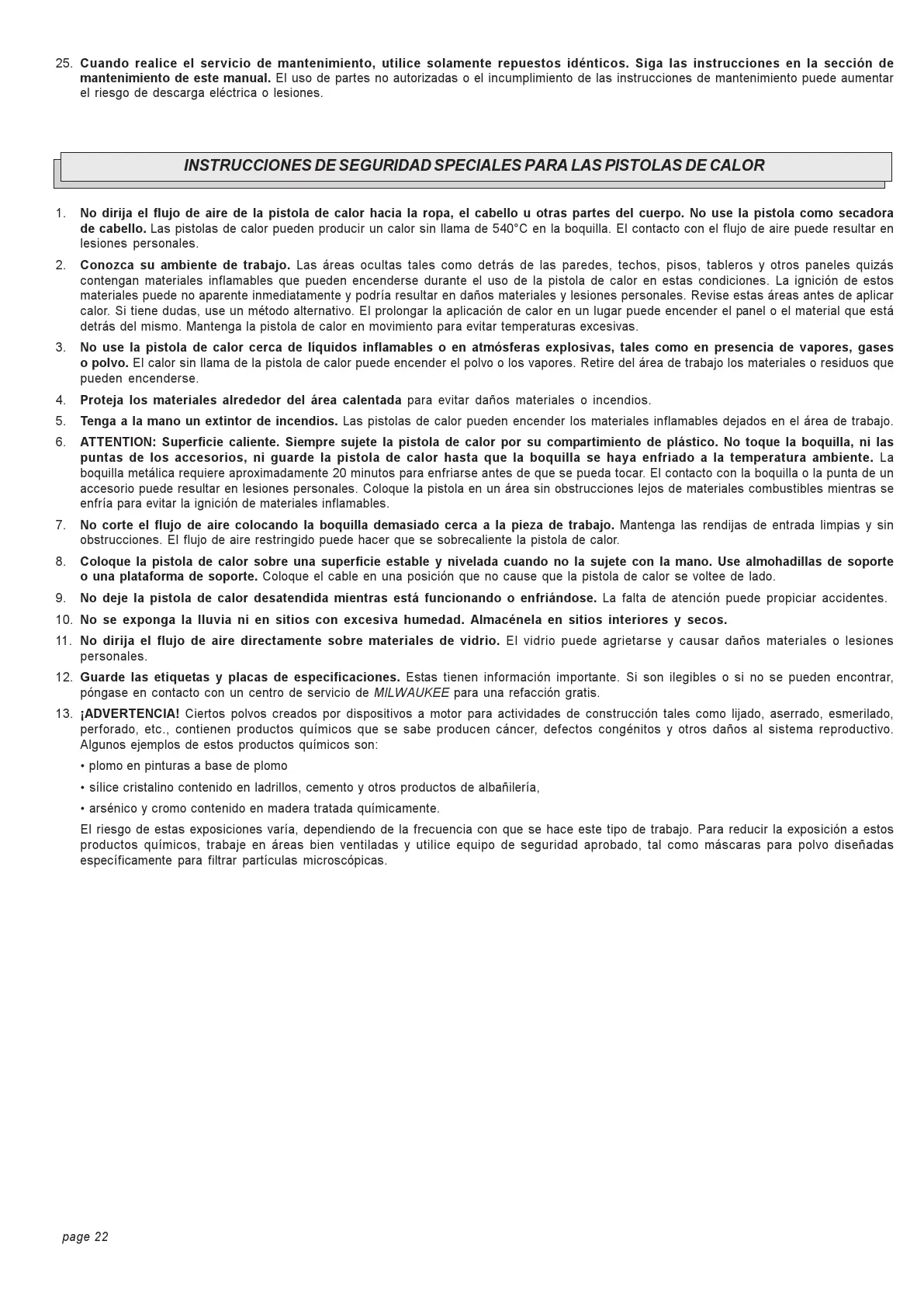 INSTRUCCIONES DE SEGURIDAD SPECIALES PARA LAS PISTOLAS DE CALOR
