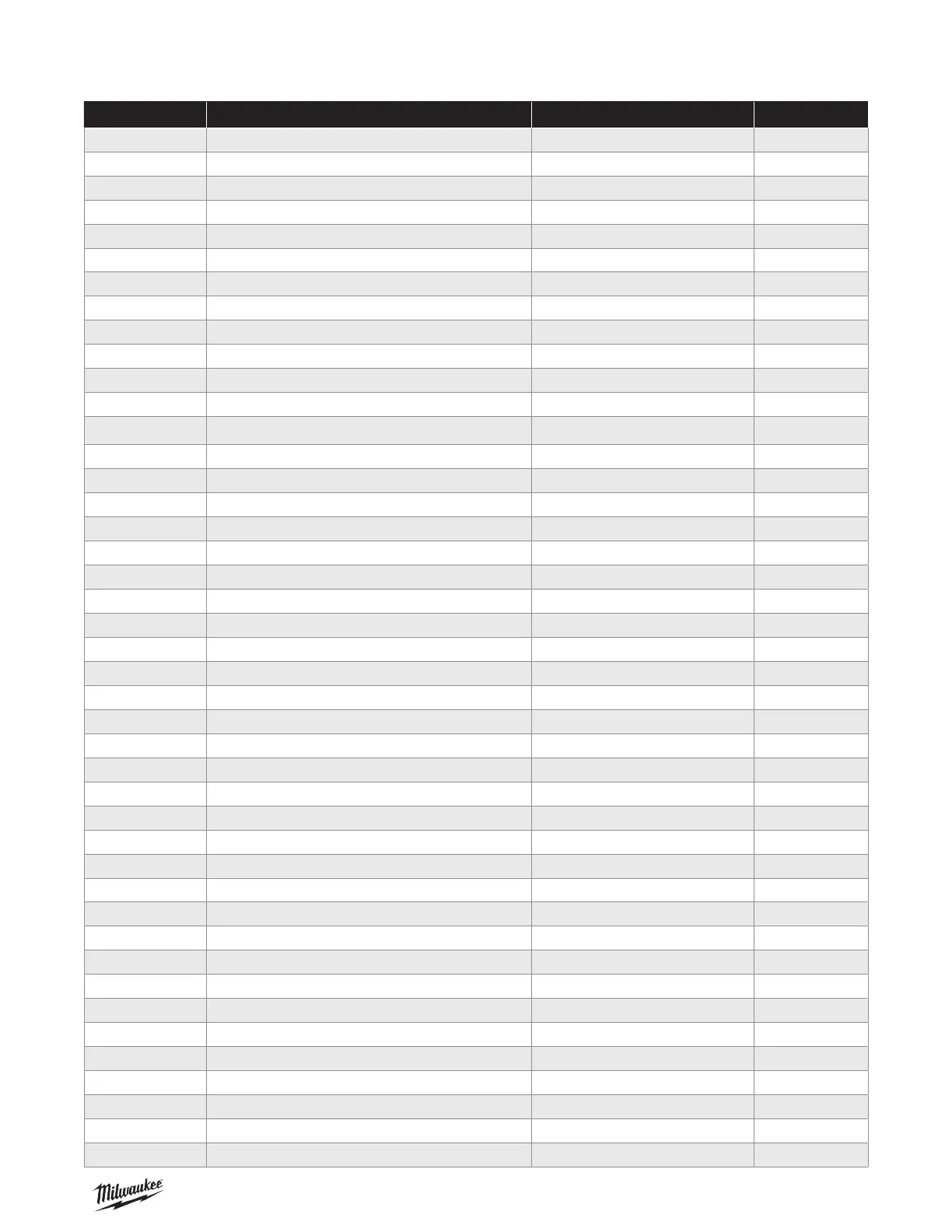 Parts List for Transmission