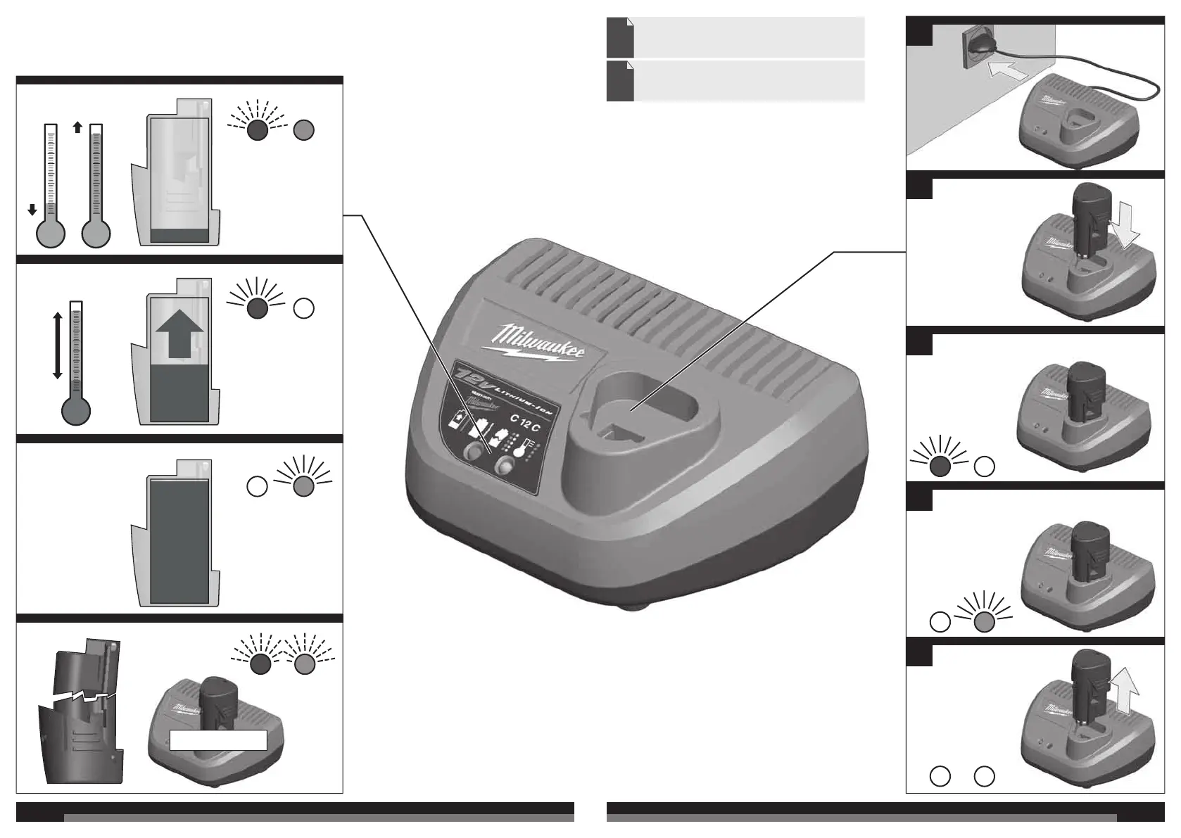 Milwaukee C12 C - Charging Process and Indicators; Temperature and Charge Status; Troubleshooting Prompt