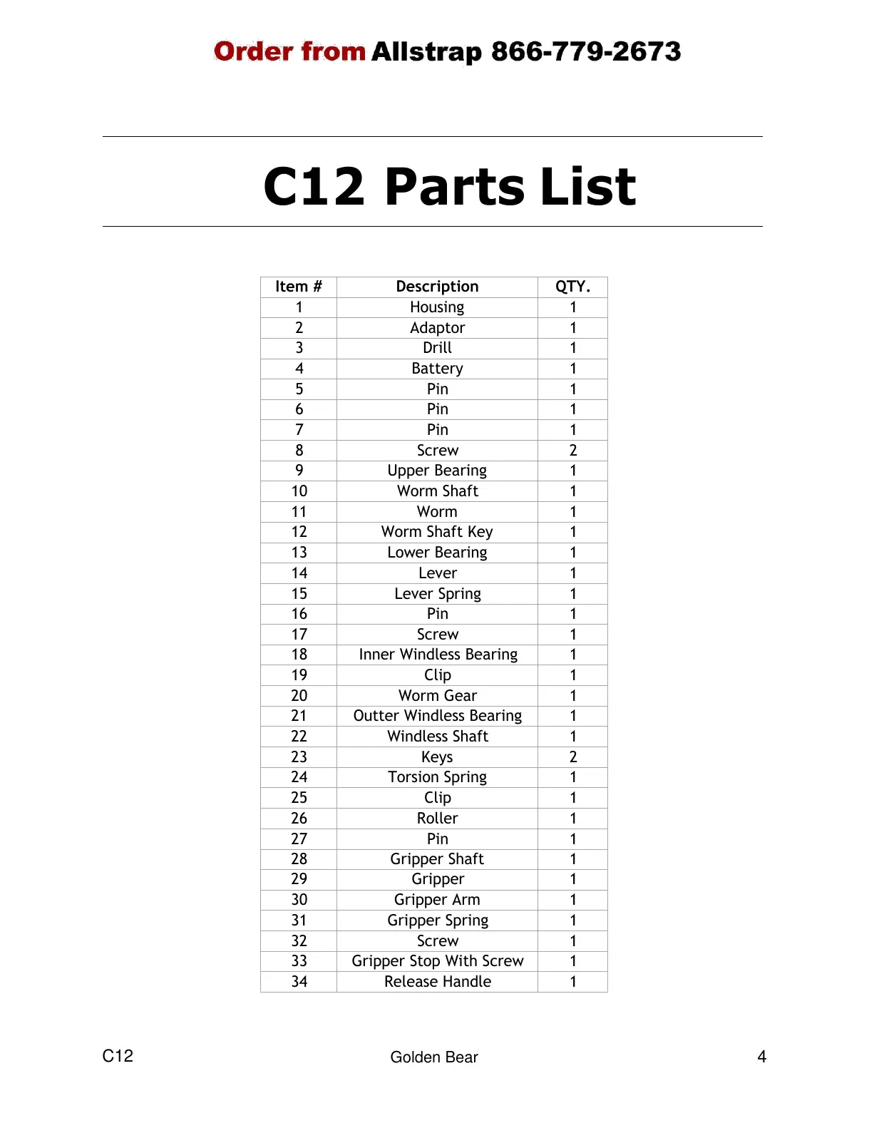 C12 Parts List