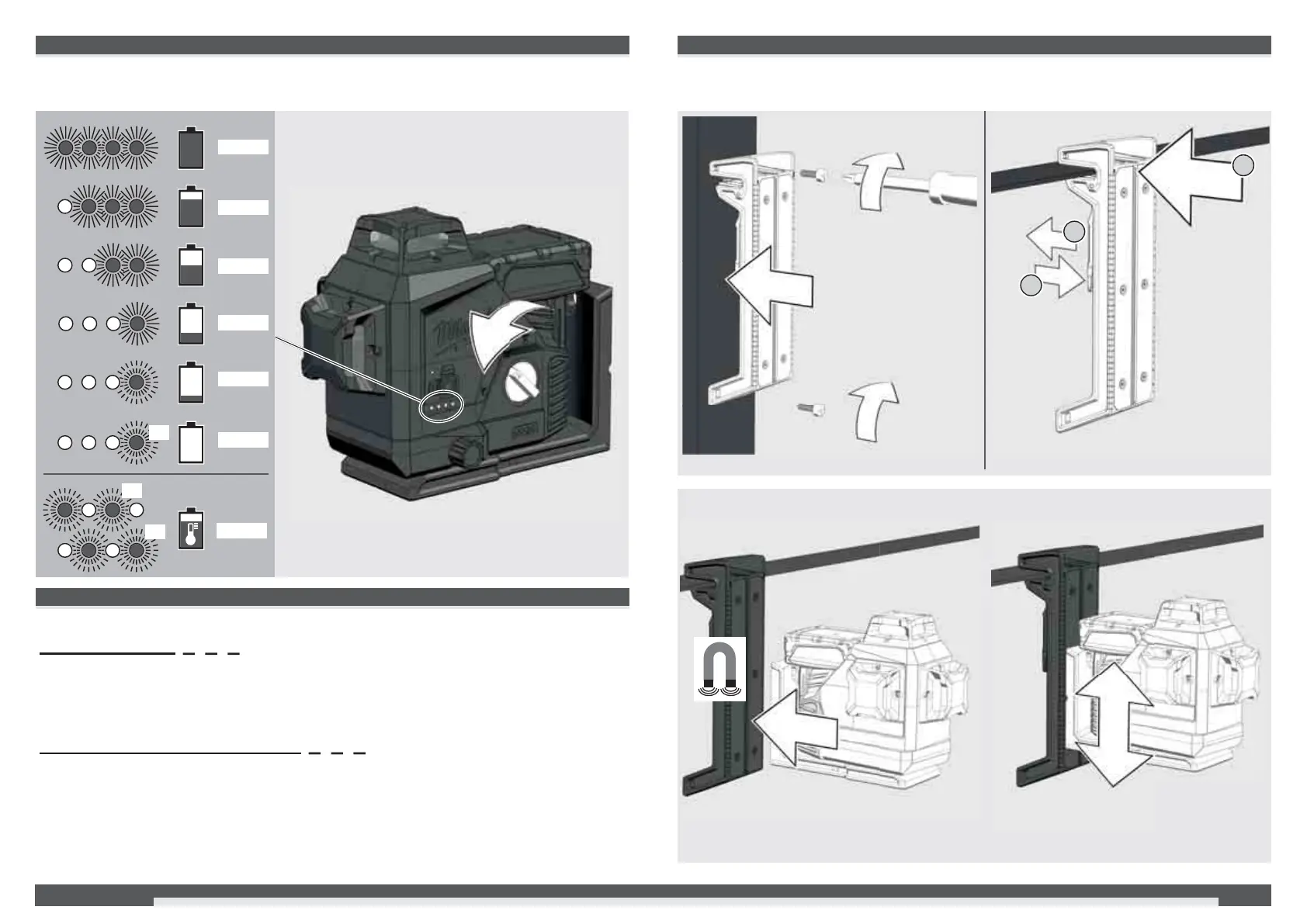 Kui pinge on madal, hakkavad laser ja LED vilkuma 4 korda ja lülituvad automaatselt välja.