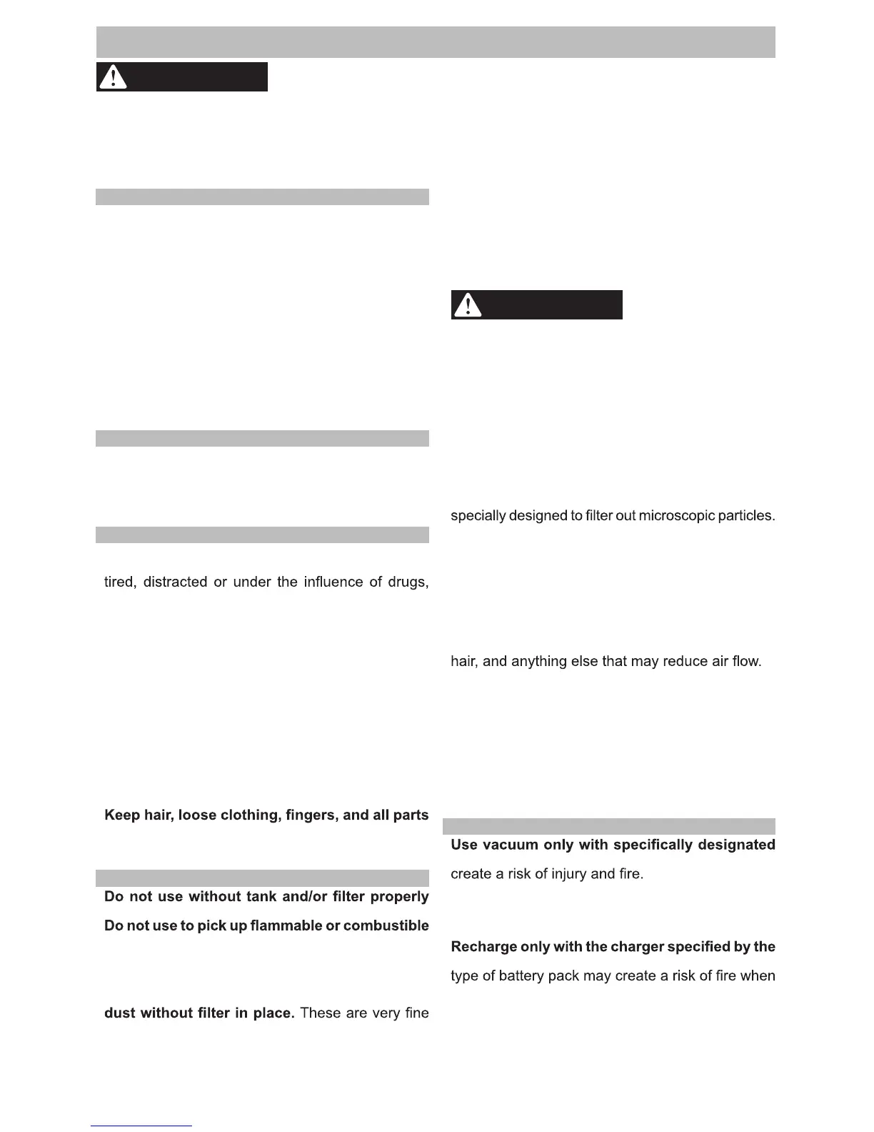• Do not pick up soot, cement, plaster or drywall