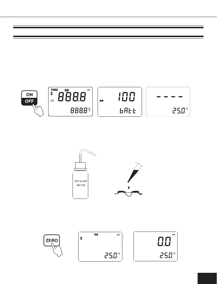 Note: The 0.0 screen will remain until a sample is measured or the power is turned off.