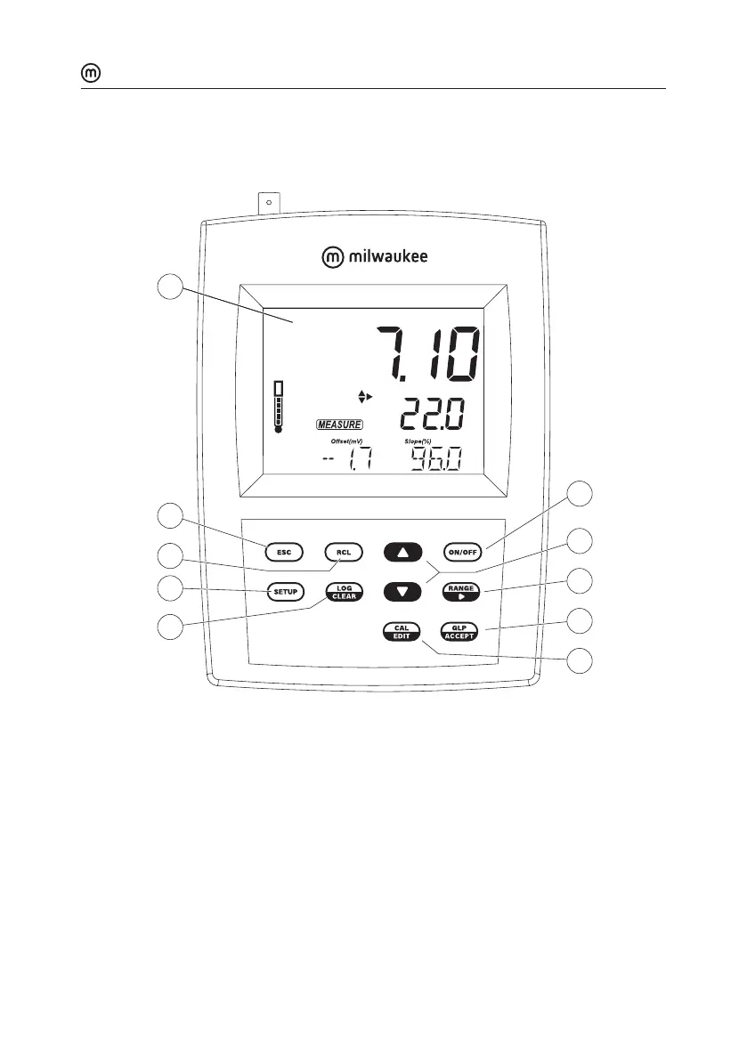 8. RANGE/ key, to select setup parameters and toggle between measurement units