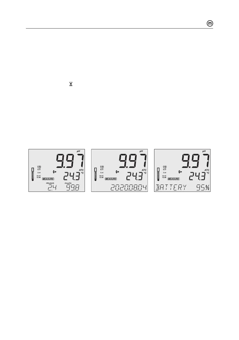 y The third LCD line displays: mV oset & slope values, time and date of measurement,