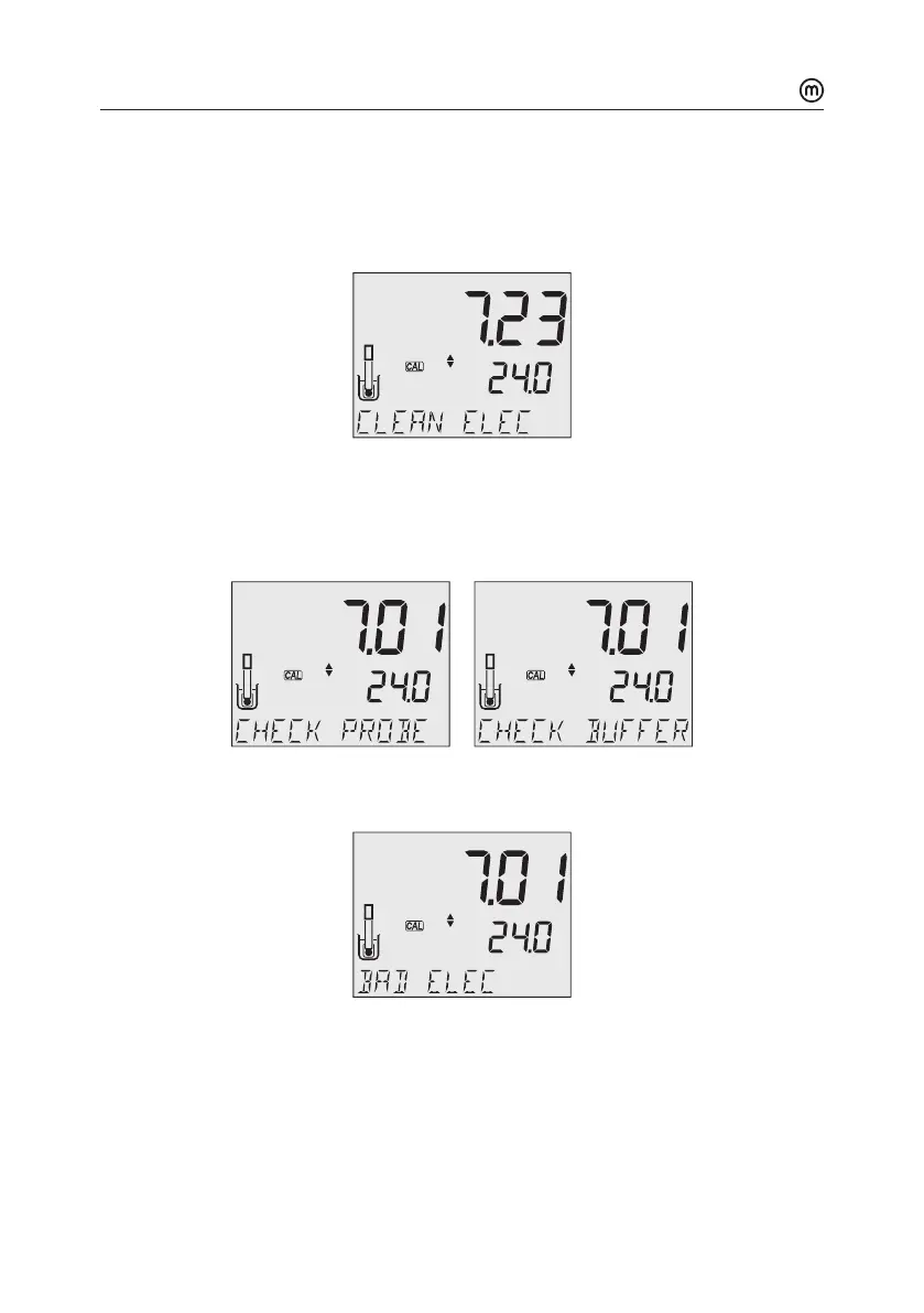 y “CHECK PROBE CHECK BUFFER” is displayed when the electrode’s slope exceeds the