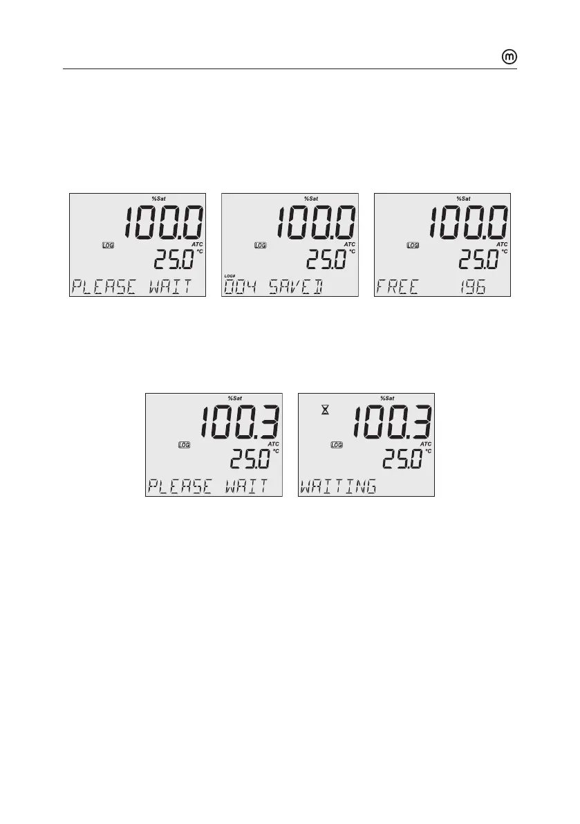 LCD displays “PLEASE WAIT”. The LOG ### “SAVED” screen displays stored lognumber.