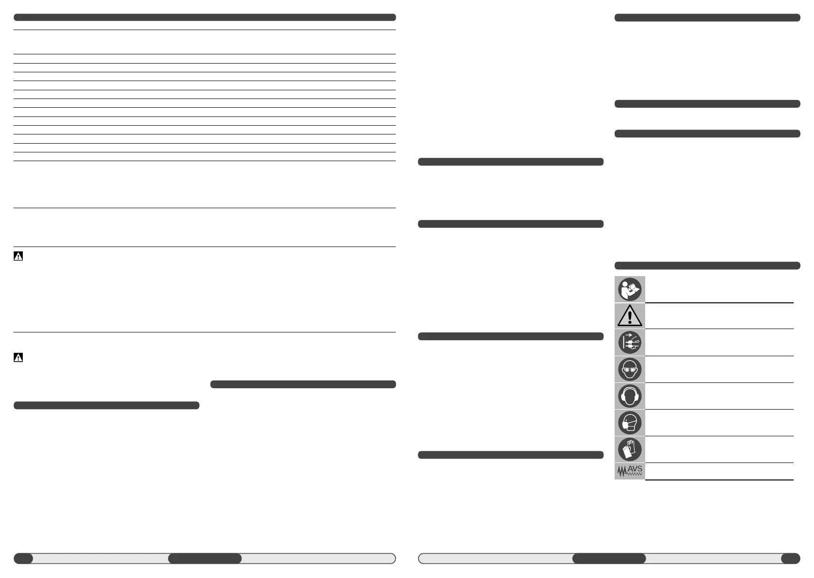 applications, with di erent accessories or poorly maintained, the vibration and noise emission may di er. This may signifi cantly increase the