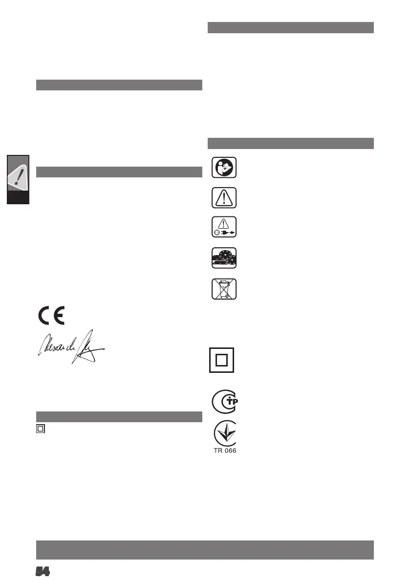 инструменте. Электроинструмент имеет второй класс защиты,