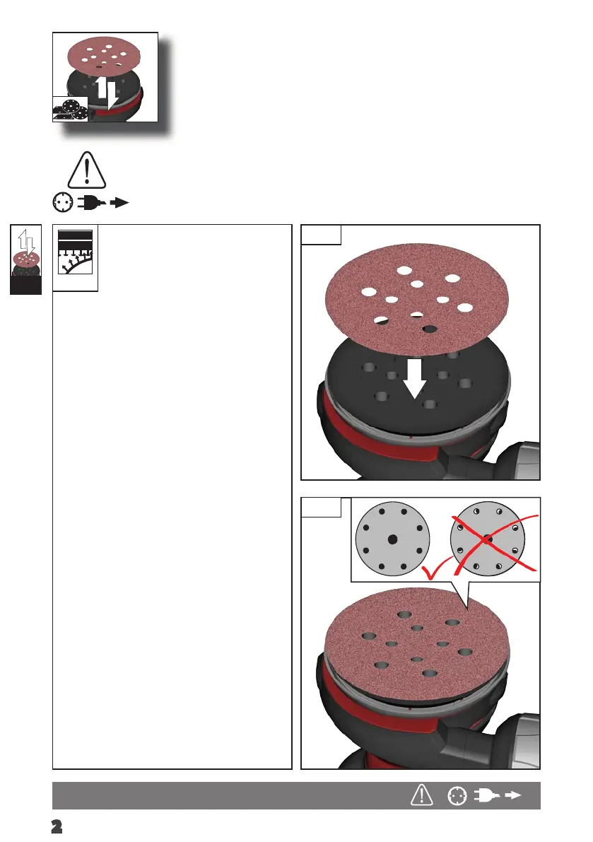Aşezaţi cu atenţie partea aderentă a suportului de material abraziv pe discul polizorului