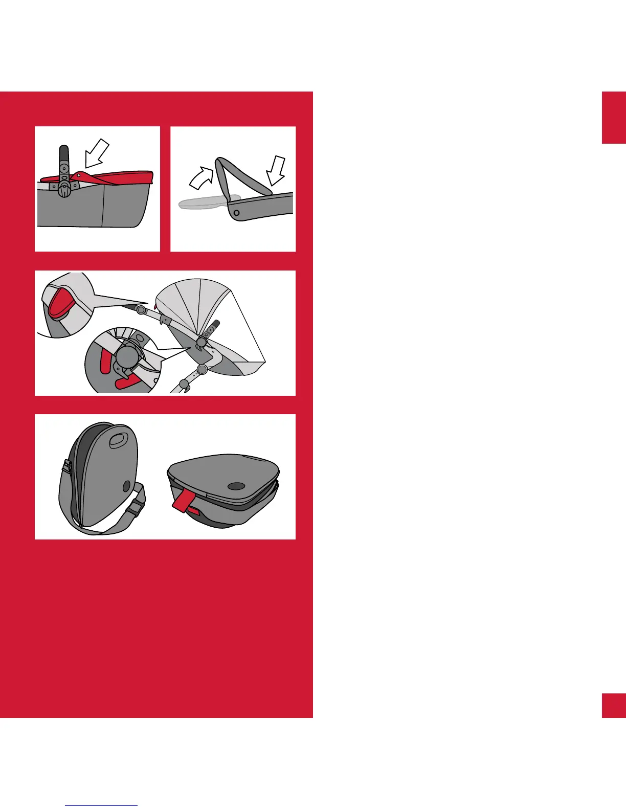 Shorten the shoulder strap and wrap it around the bag.