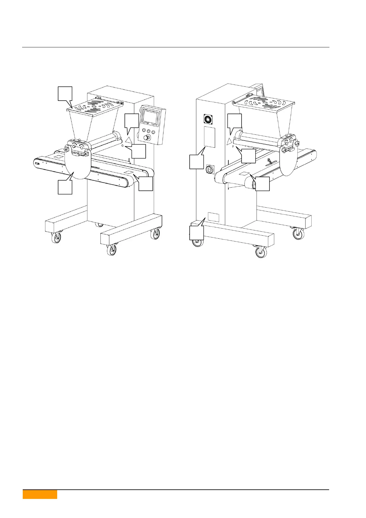 While using the machine for production or maintenance, the residual risks present are possible crushing of the