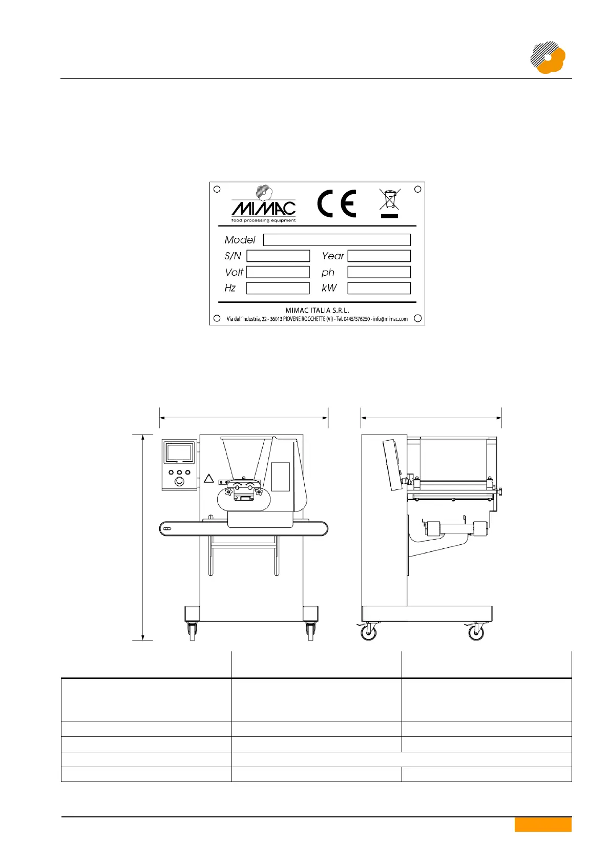 In each machine there is an identification plate containing information about the Manufacturer and the machine