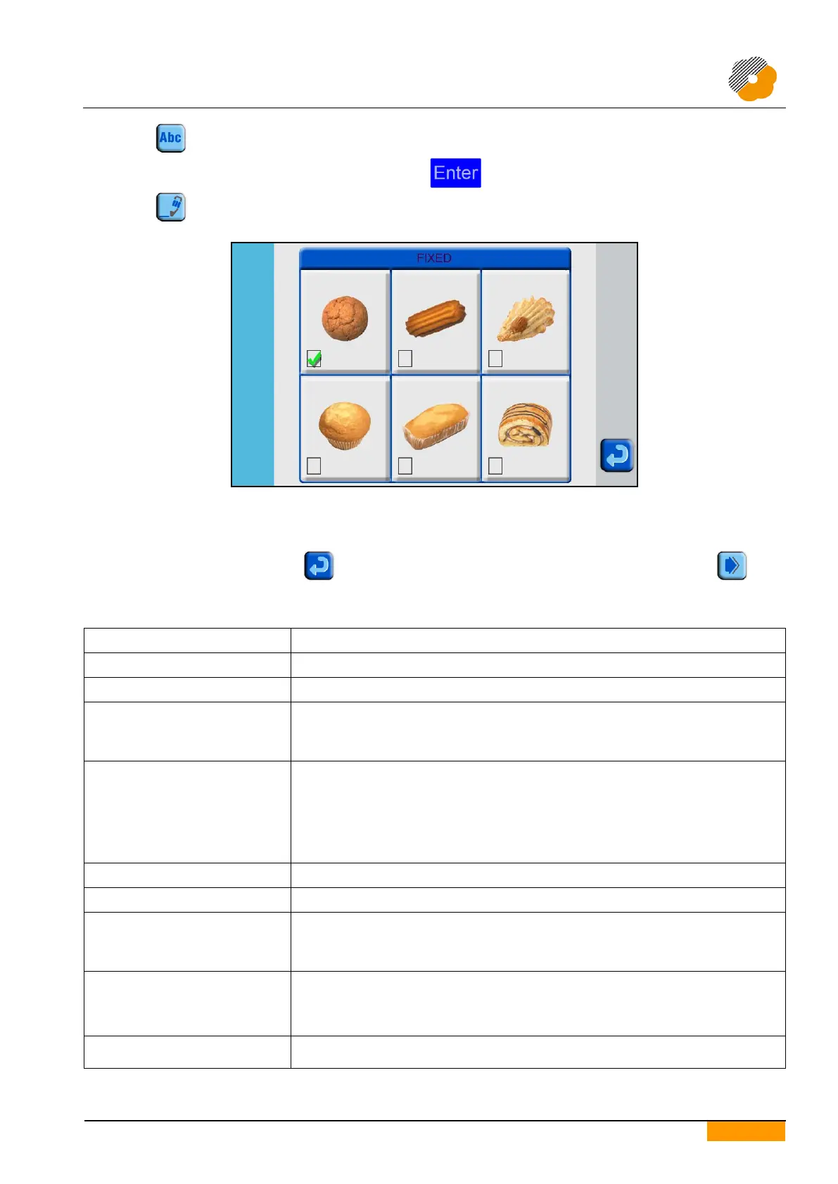 Press the icon to select or modify the type of product to be made.