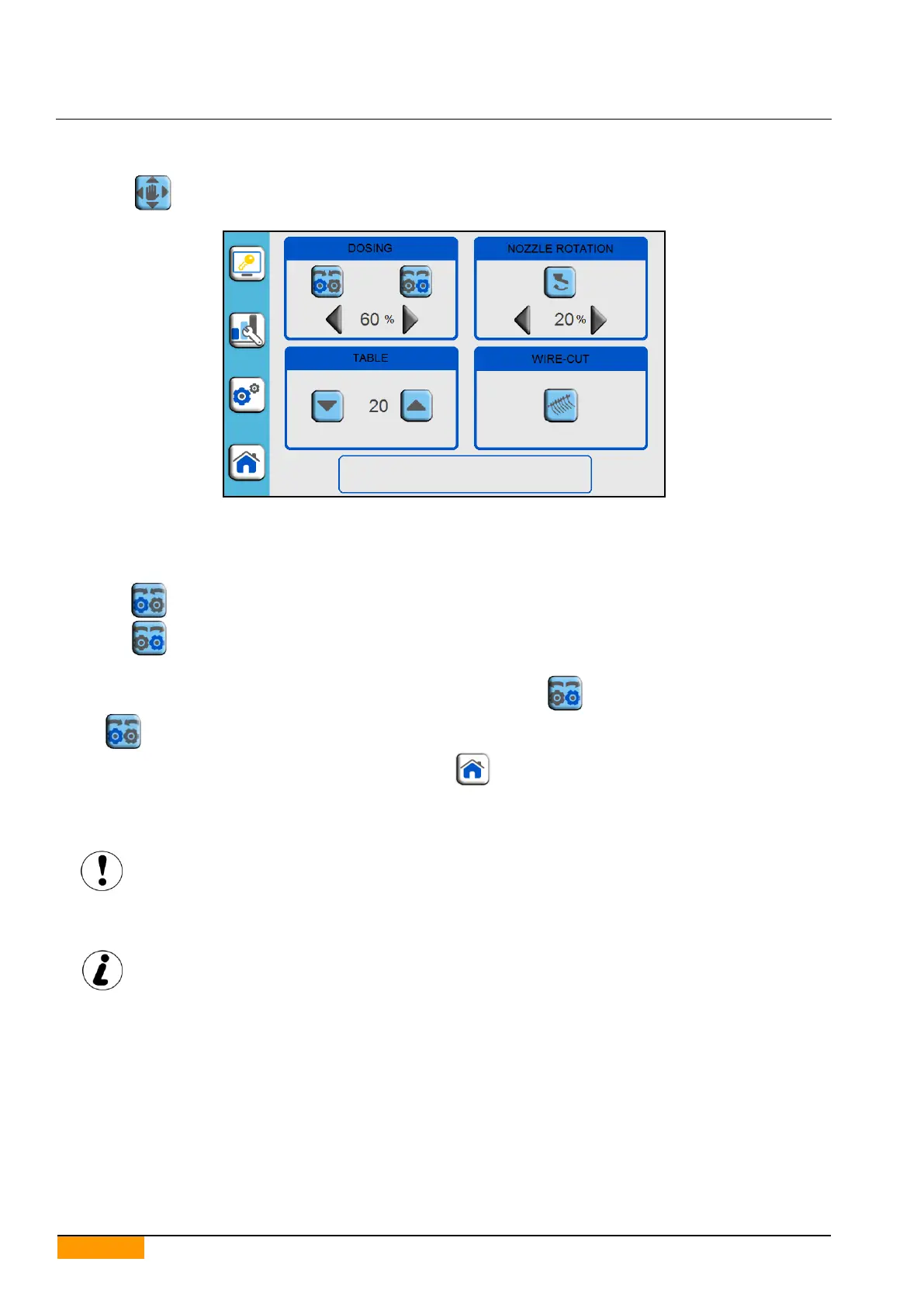 To prevent unwanted product drips at the end of the procedure, keep the icon (with the roller type dosing unit)