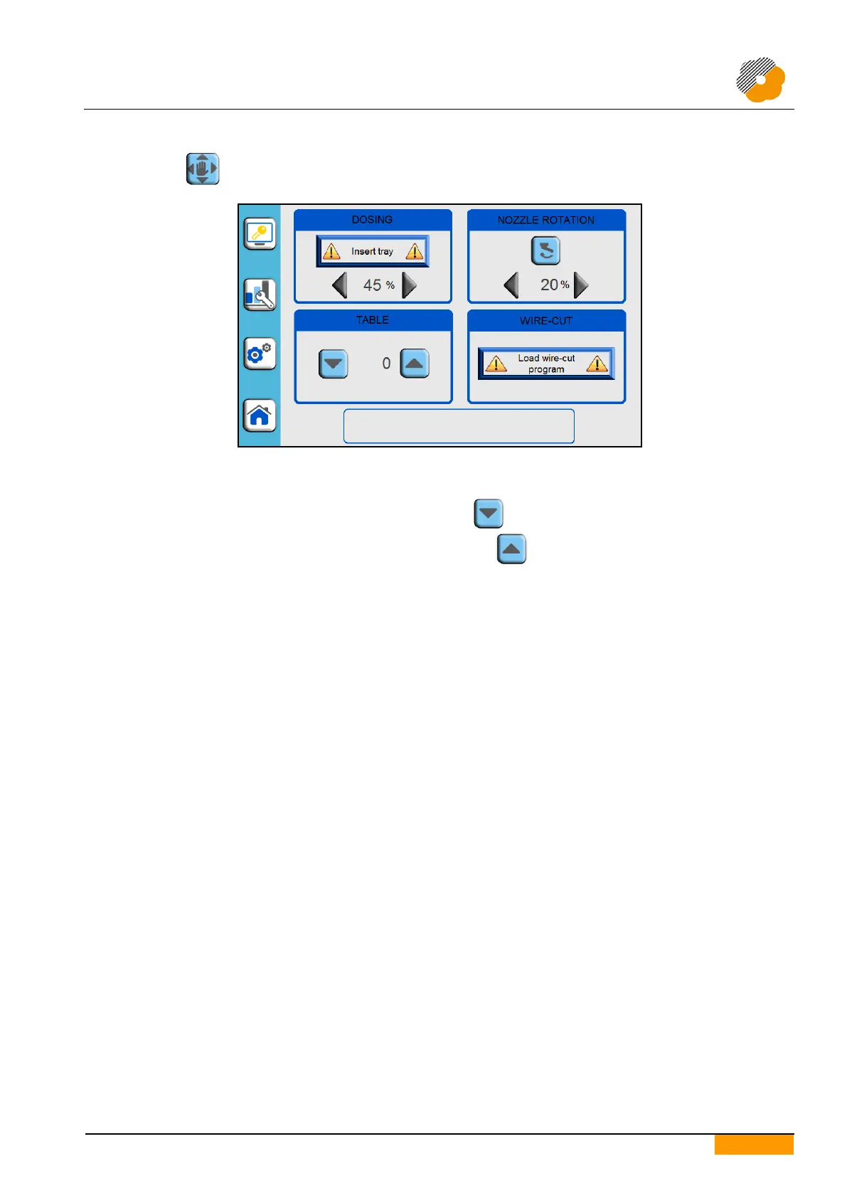If the "Table overtravel alarm (bottom)" cuts in, press the icon together with the start push-button.