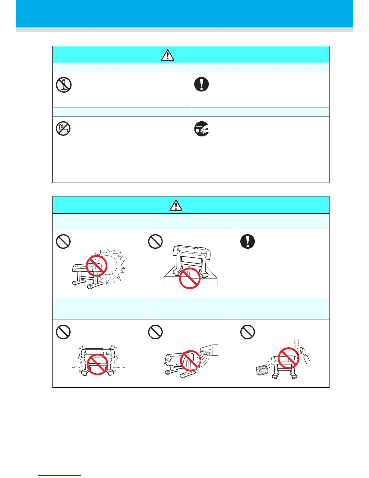 • Never disassemble or remodel the plotter.