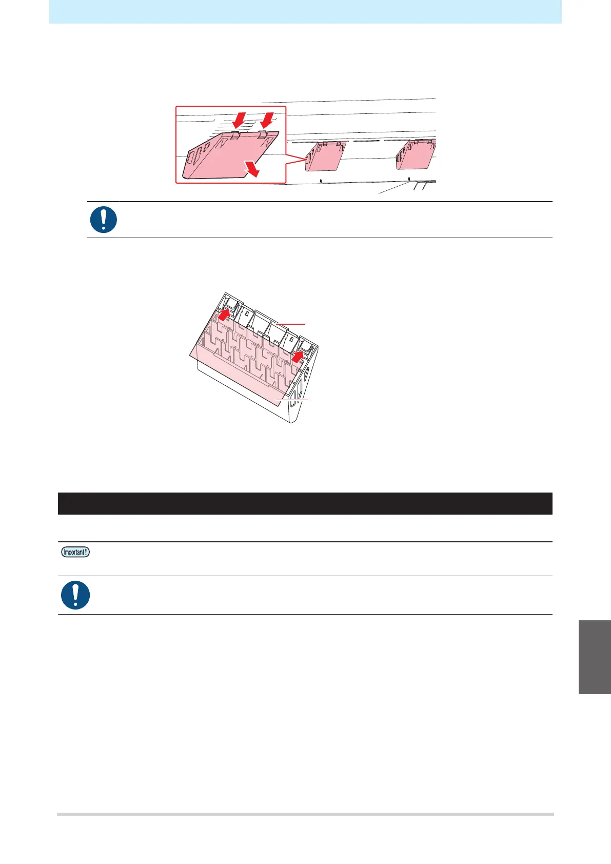 • Insert the tabs of the exhaust fan box into the slits of the machine, and clip in the tabs at the front.