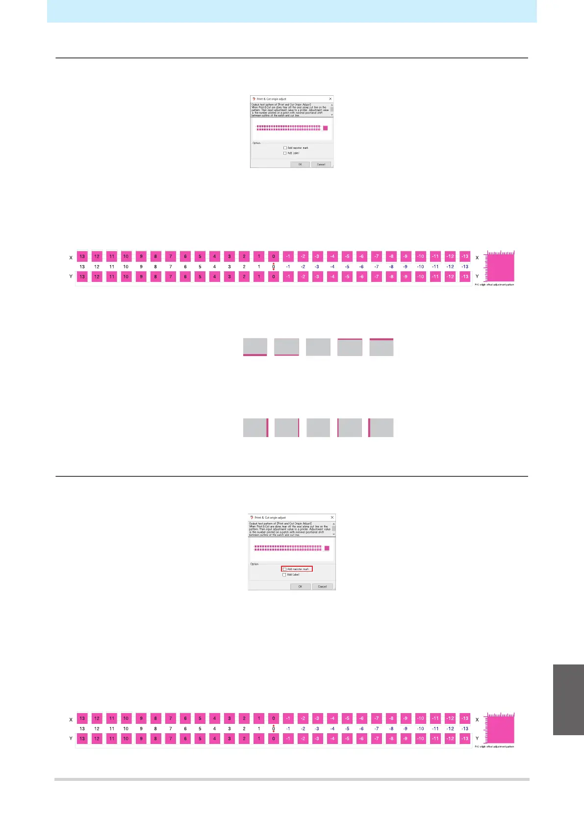 A correction pattern is cut. Detach the cut part of the pattern and check the adjustment values.