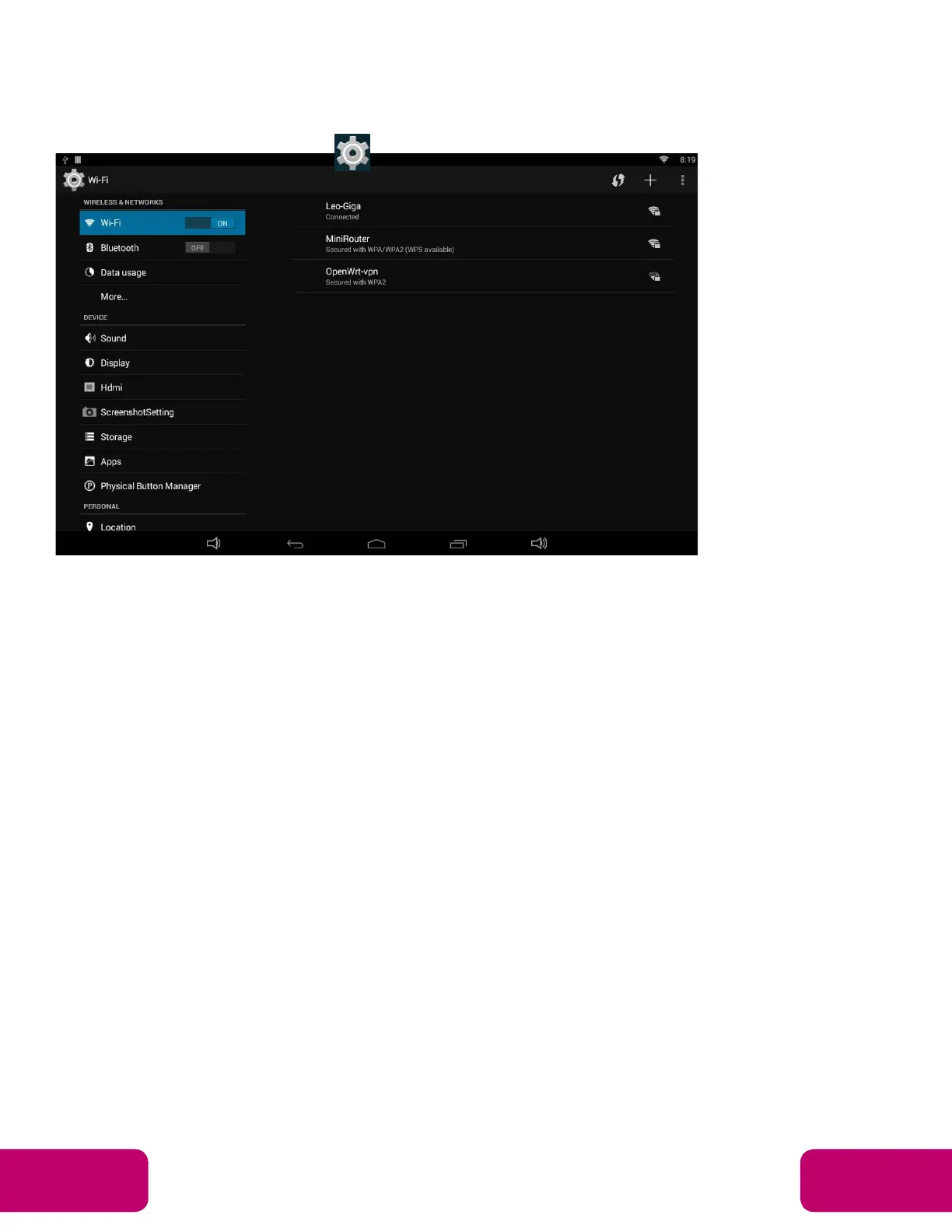 In the App list, click “Settings” to open the system setting app, and select the
