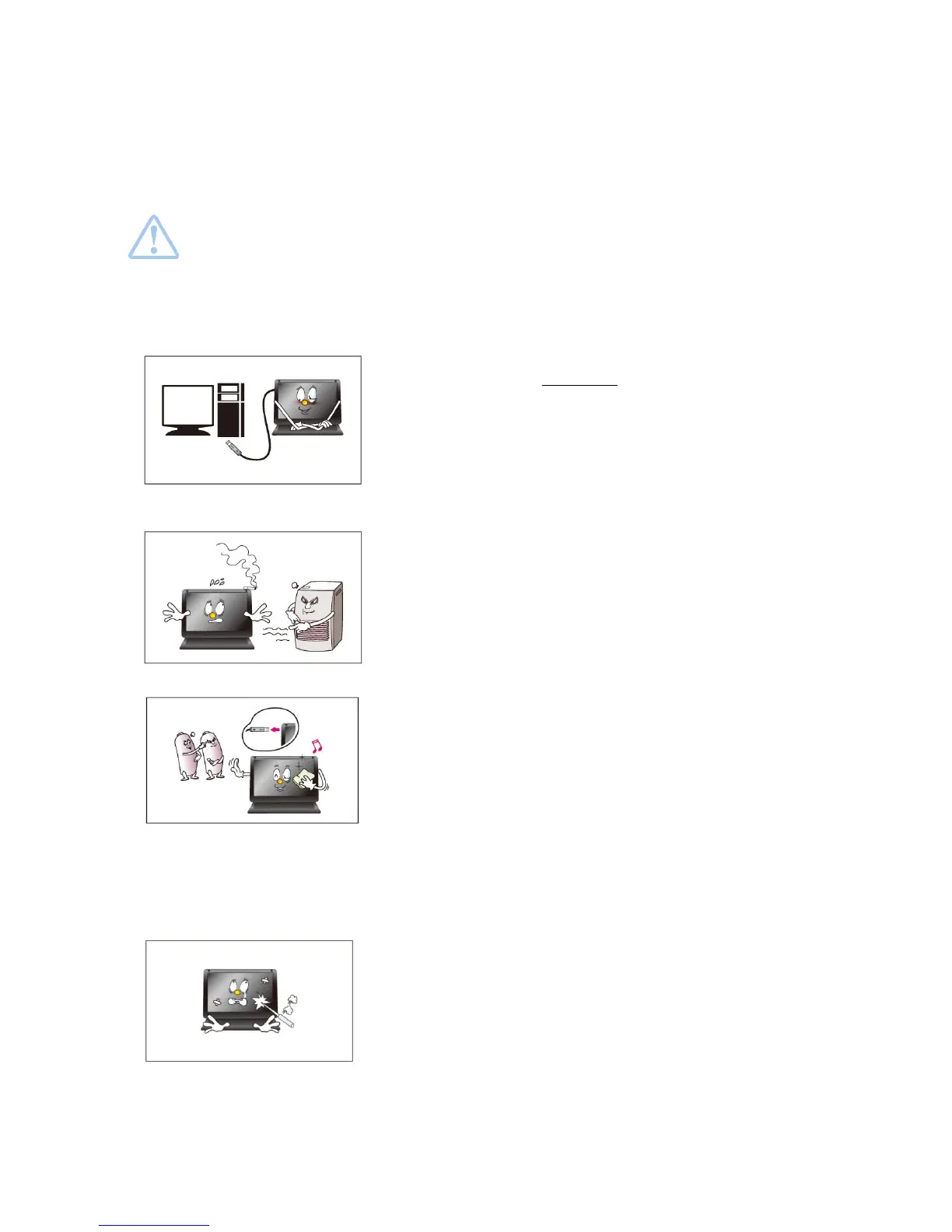 ▪ Do not force on LCD(Touch Panel) Screen