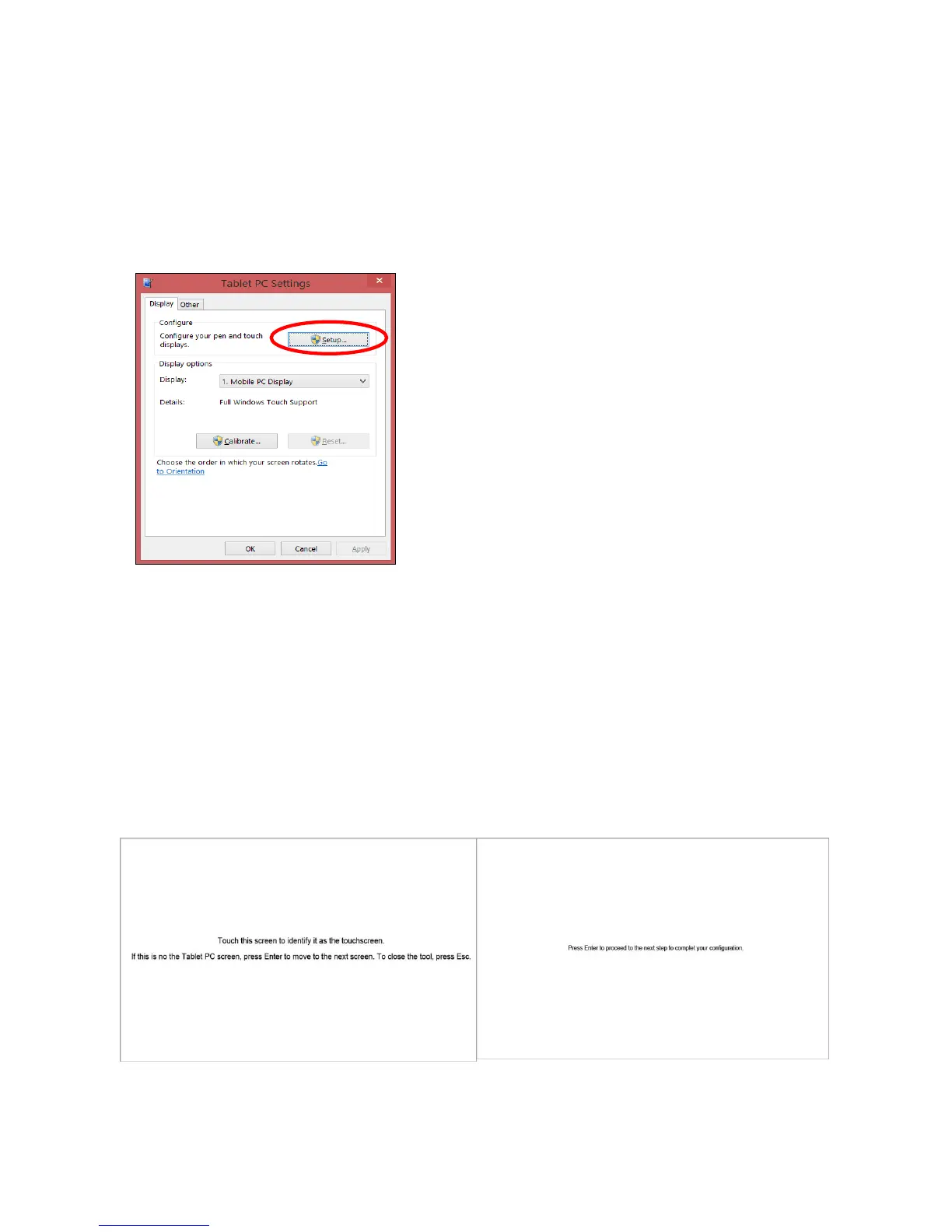This section shows you how to set the “Tablet PC Settings” to use the capacitive touchscreen for