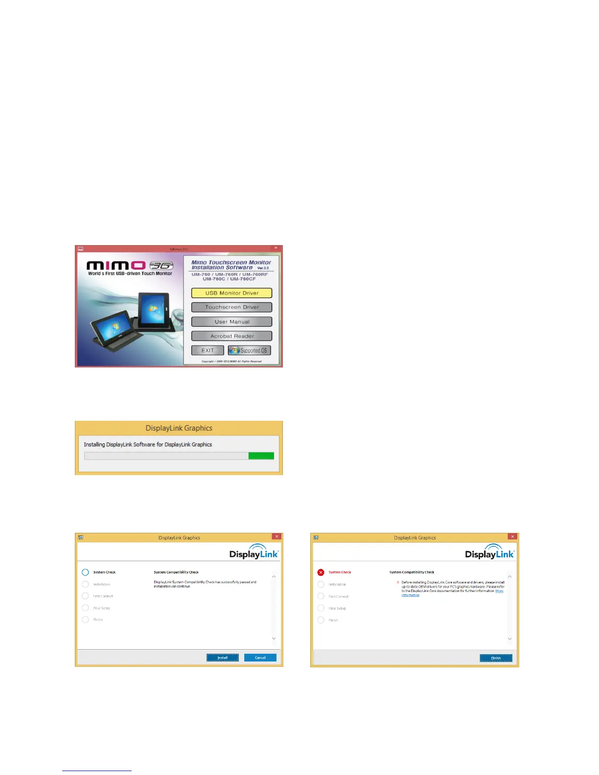 This section shows you how to install the DisplayLink USB Graphics software and Touchscreen driver for MIMO
