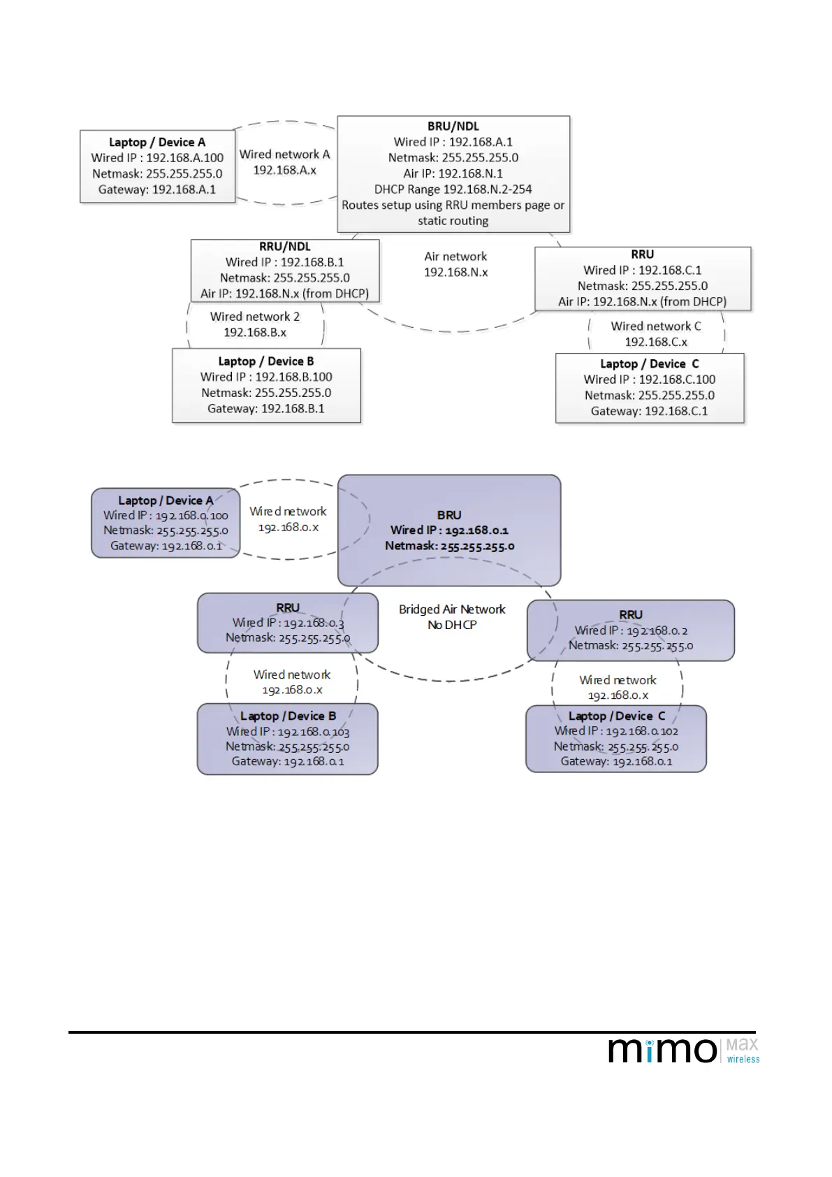 Example IP diagram using 192.168.x.x subnets (Routed mode)