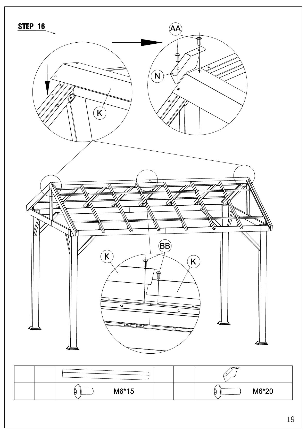 Mimosa 0262348 - Step 16: Install Roof Edge Panels and Cover Plates; Connect Cover Plates (N) and Edge Panels (K) to Frame (C & C1); Cover Roof Edge Panels (K) on Frame (D & D1)