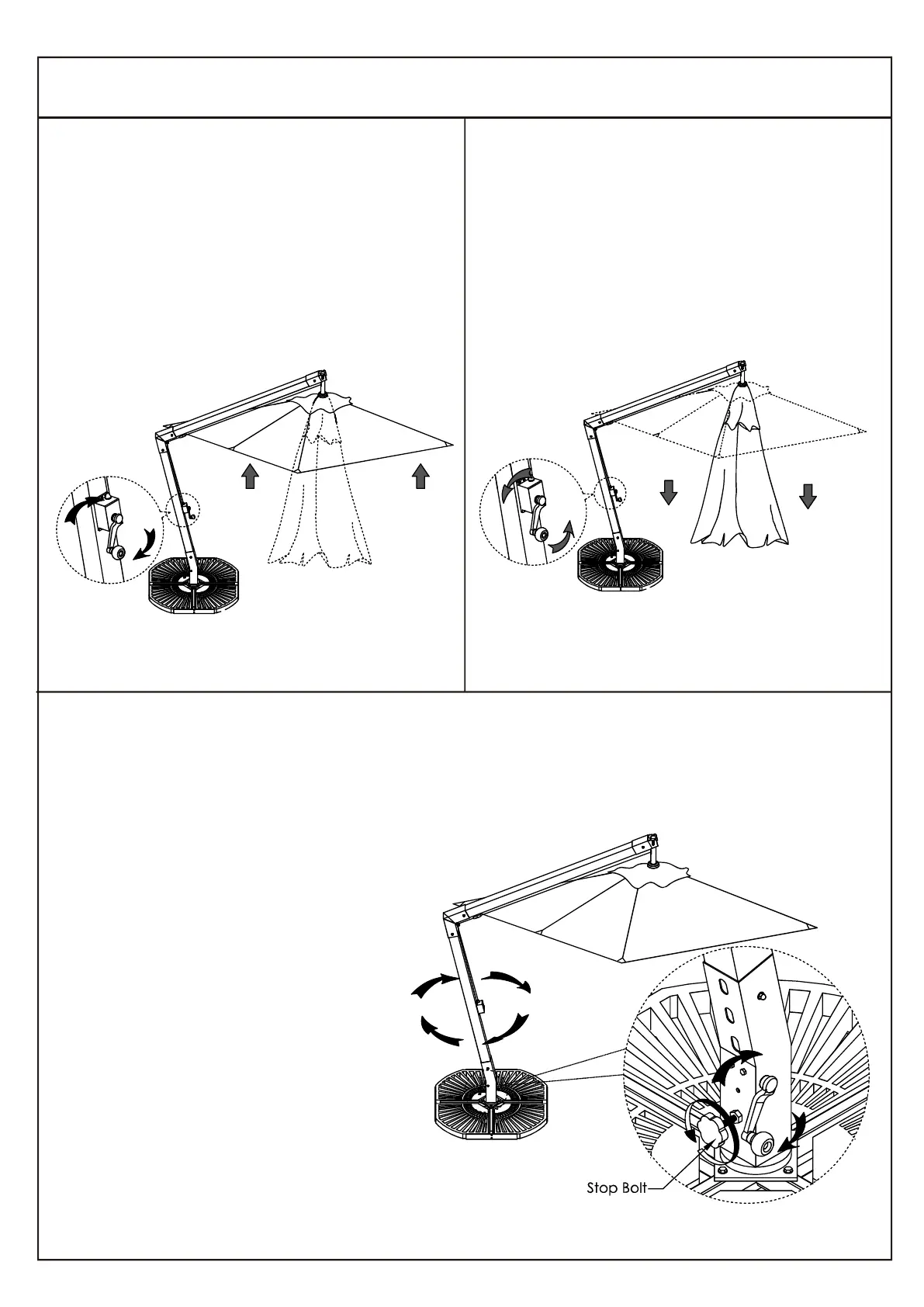To rotate your umbrella, loosen the stop