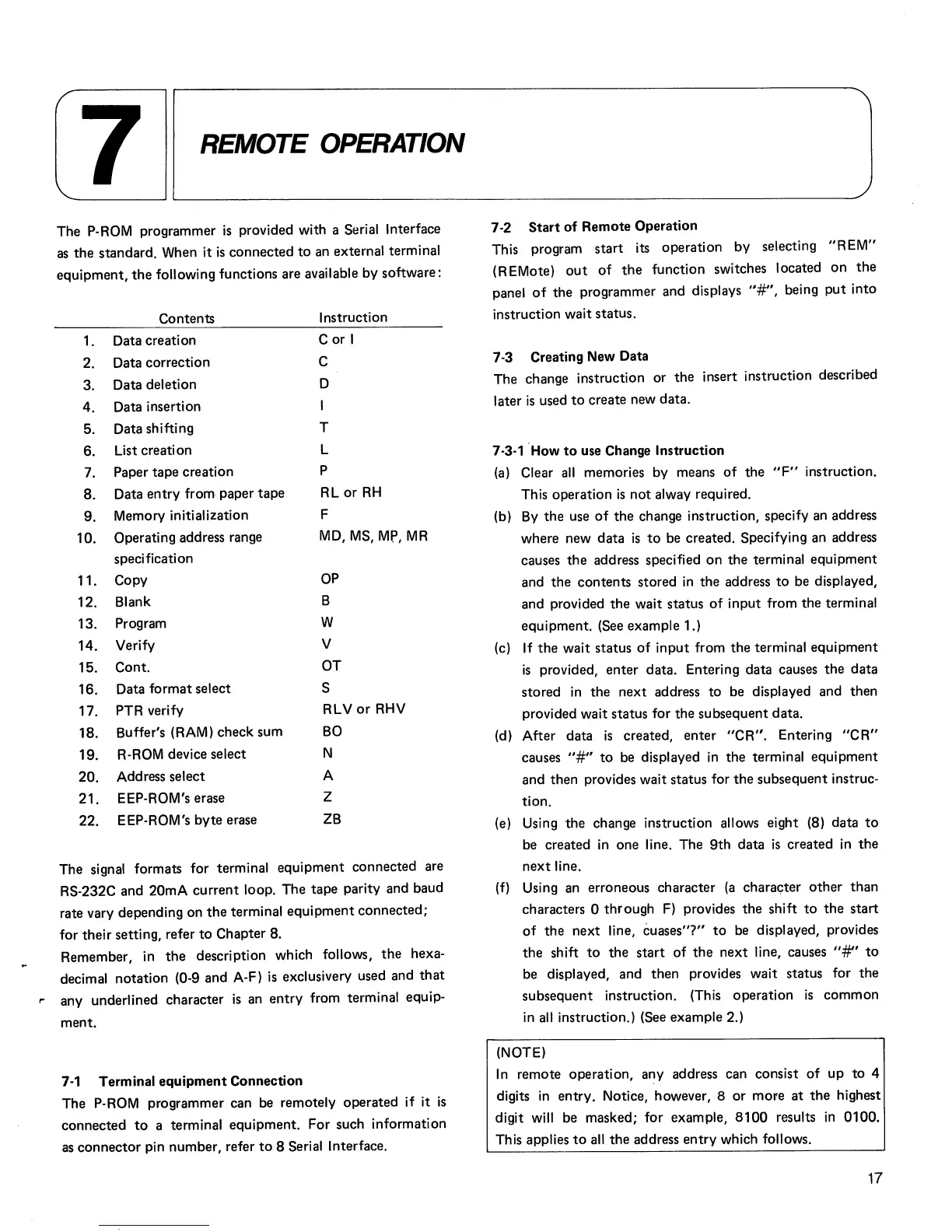 change instruction allows eight (8) data