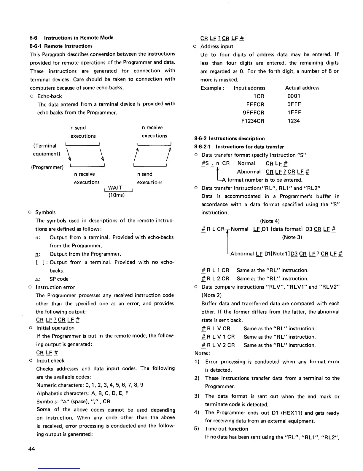 o Data transfer instructions"R L", R L