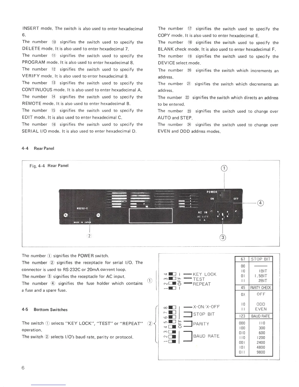 MINATO 1866 - Rear Panel; Bottom Switches