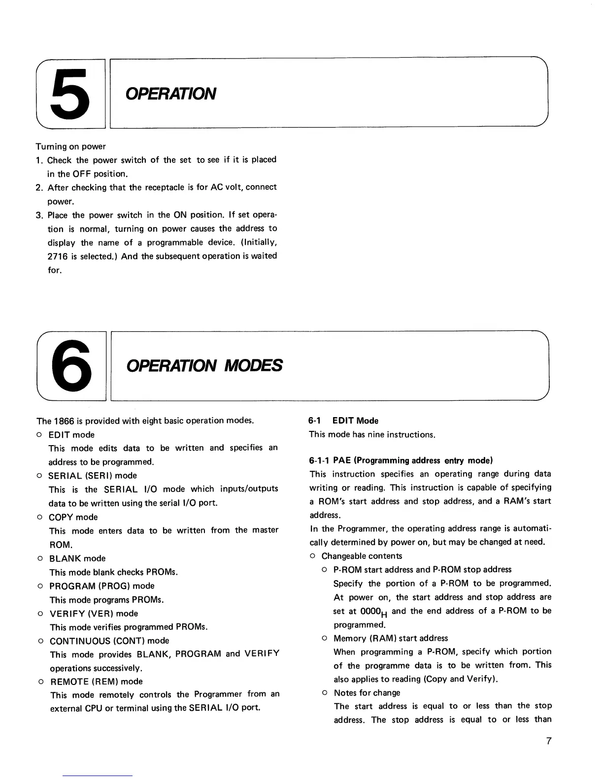 PAE (Programming address entry mode)
