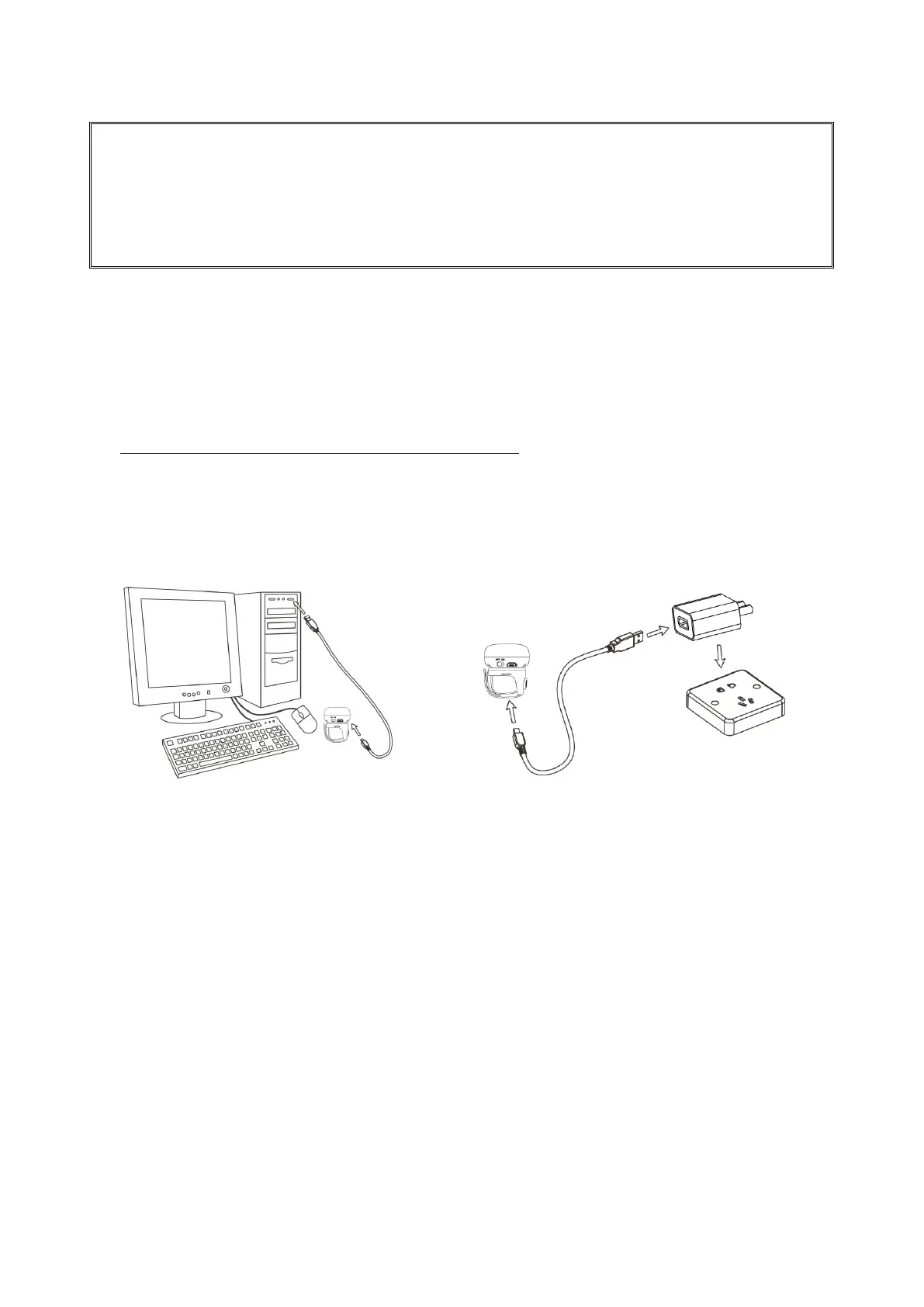 1. Please charge the scanner before the first time of use. There are two methods of charging battery