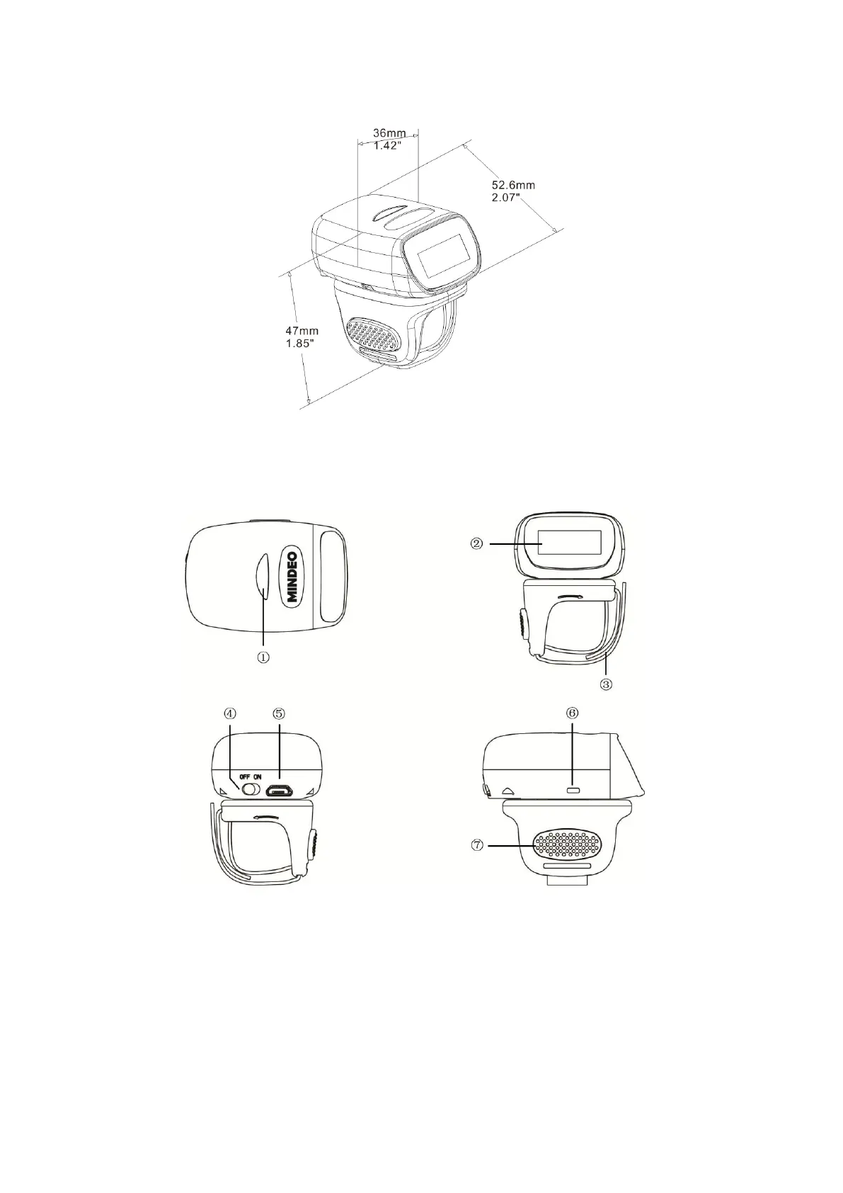 Mindeo CR40-2D - Dimensions; Parts of the Scanner