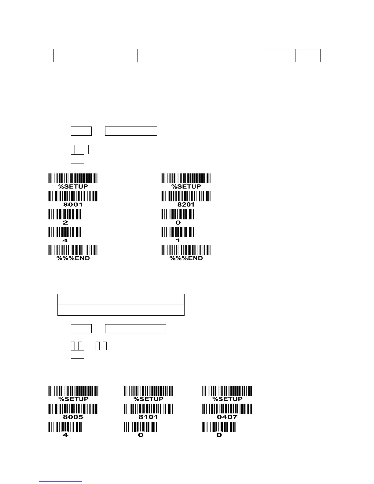 1) Scan SETUP and Insert G1 string setting barcode “8005”.