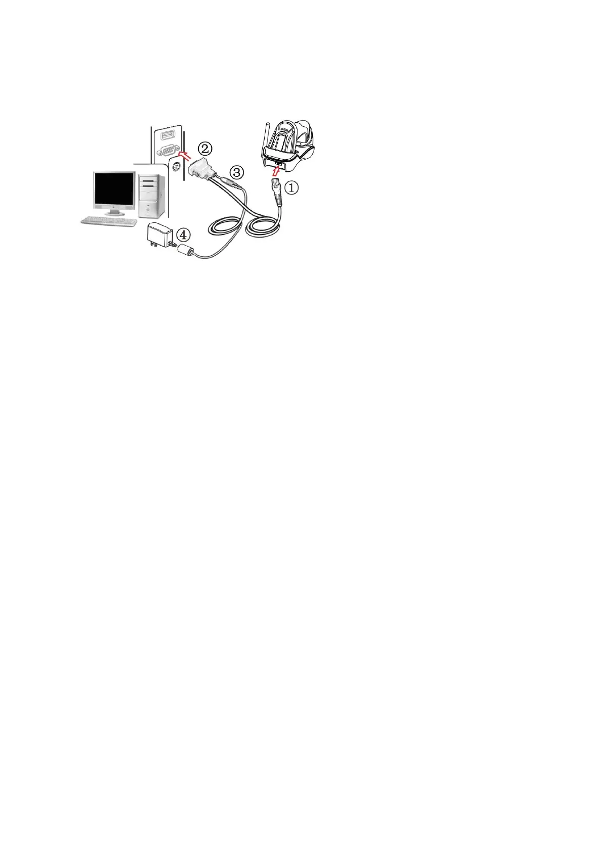 1. Connect the DB9 serial communication cable with the cradle and the COM port of the computer.