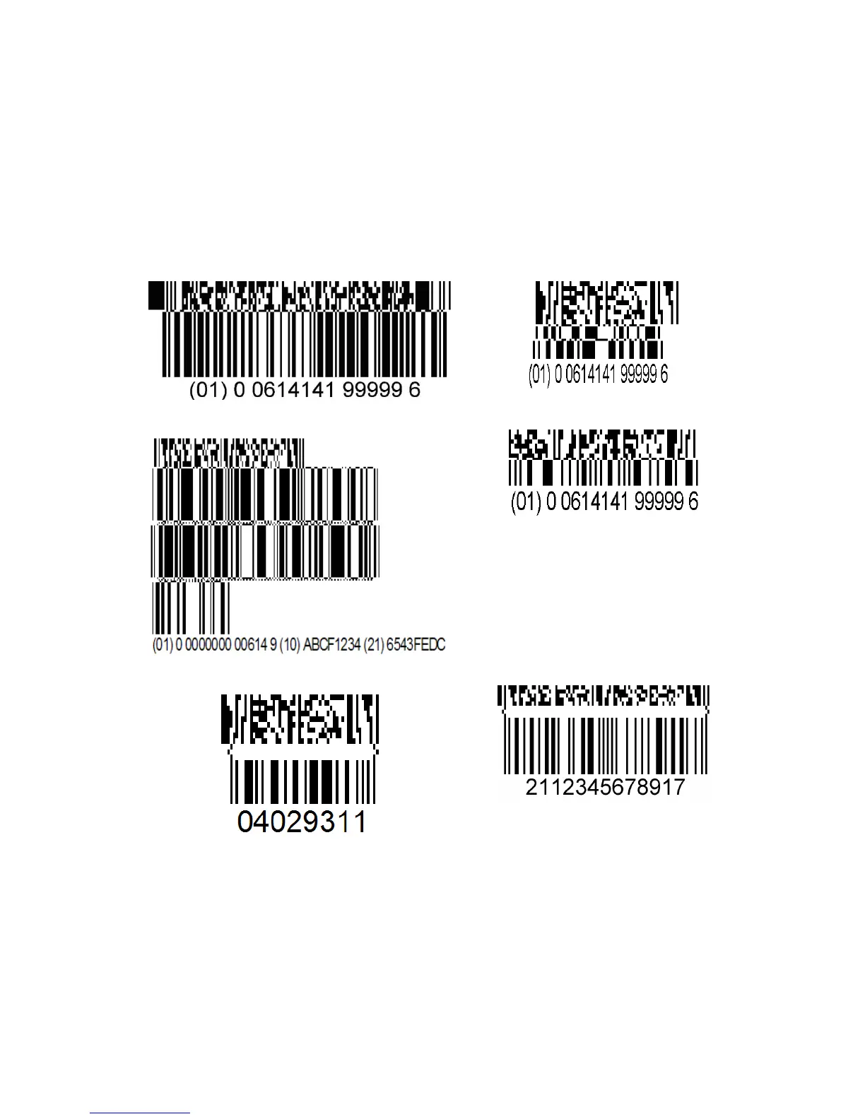The linear component will be a traditional symbol of types: GS-128, EAN-8, EAN-13, UPC-A, UPC-E or