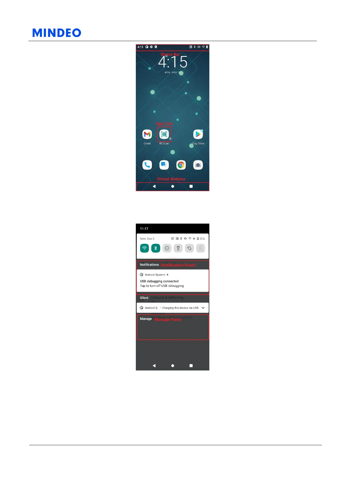 Mindeo M40 - 5.1 Home Screen Diagram; 5.2 Notification Panel
