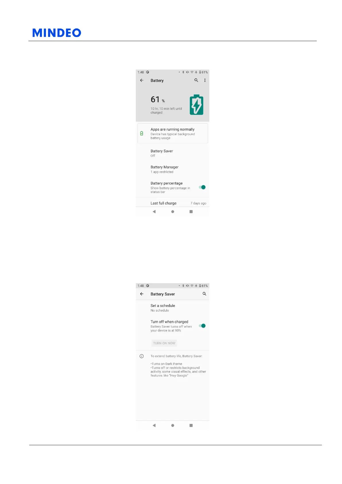 This page shows the remaining battery capacity and estimated battery life of the device. You can also