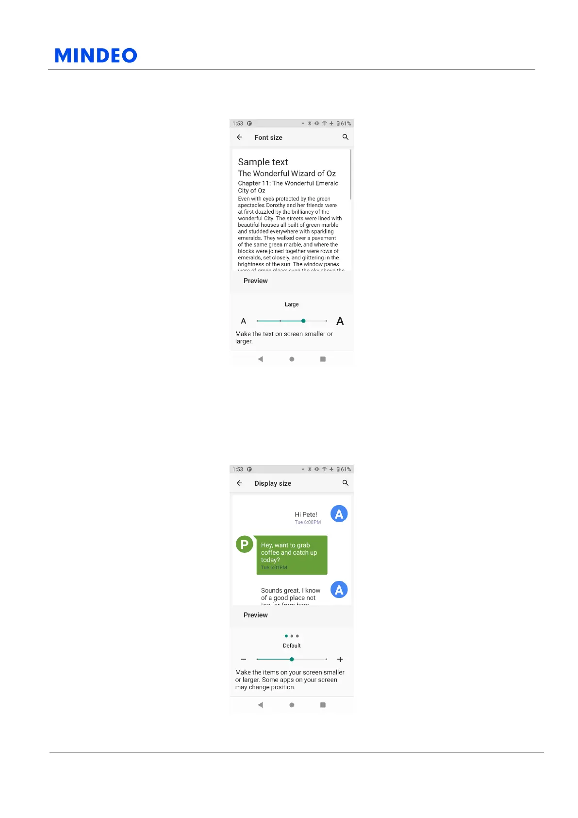 Mindeo M40 - Font Size; Display Size