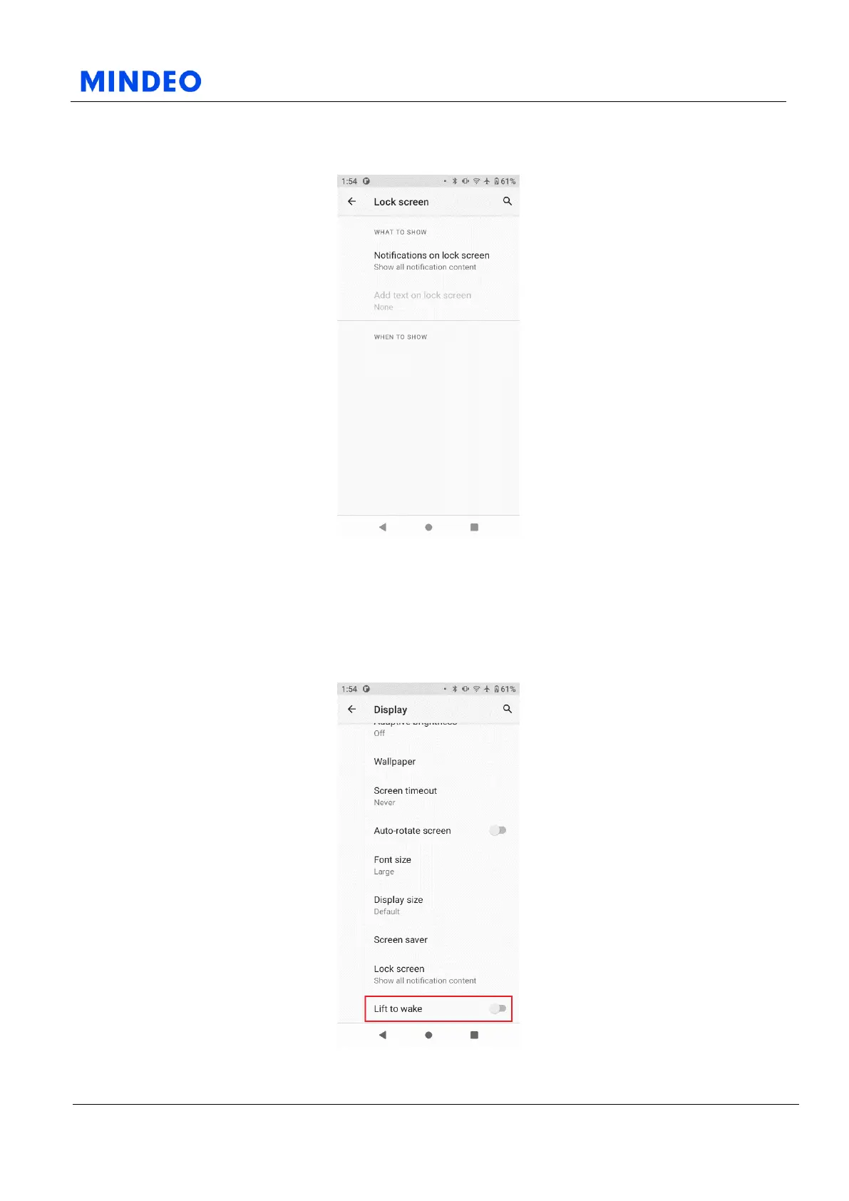 Mindeo M40 - Lock Screen; Lift to Wake