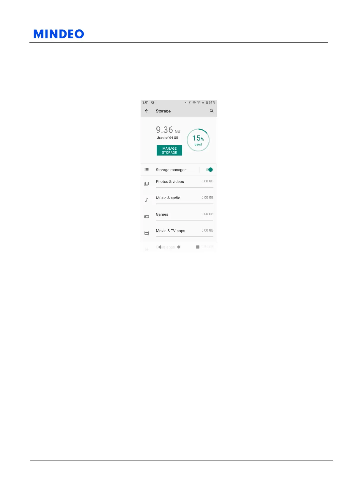 This page displays the currently used and total storage space of the device. You can click the Manage